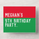 Bright colours and bold design in Stripes. 9th Birthday party invitation all-in-one card. 9th birthday party invitations.