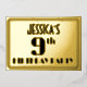 The front of this stylish and Roaring Twenties era inspired ninth birthday party/celebration foil invitation card design features a customisable name, an art deco look inspired number “9th”, the message “BIRTHDAY PARTY”, and a multi-line border. The back features personalised details about the event, such as the place/venue, date, time, and any other important information. Stylish, elegant, customised invitations like these might be used to invite guests to a birthday party being held to celebrate somebody’s 9th birthday. [~Z0000606]