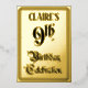 The front of this ornate ninth birthday party foil announcement design features the message “9th Birthday Celebration” in elegant script-style text. It also has an editable name. The back features personalised details about the event, such as the date, time, venue/location, and any other important information. Elegant, luxurious, editable invitations like these might be used to invite guests to a birthday celebration/party being held in celebration of somebody’s 9th birthday. [~Z0000596]