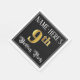 This luxurious and elegant birthday-themed paper napkin design features a custom name and the message “9th Birthday Party”. The large number “9th” has a faux/imitation gold-inspired colouring pattern, the words “Birthday Party” are in fancy script-style text, and the background is coloured black by default (although it can be customised). Fancy, ornate paper napkins like this might be useful at a birthday celebration/party being held to honour somebody’s 9th birthday. [~Z0000565]