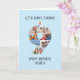 Make your child's 9th birthday extra special with this adorable 9th Birthday Photo Card. Featuring a light blue background, playful “Look Who’s Turning 9” design, and a big number nine illustrated like a birthday candle, this card is full of joy and charm. The back of the card includes a sweet cupcake graphic with a “Happy Birthday”. The inside of the card has plenty of room for your own heartfelt words. Perfect for parents, grandparents, friends, or family, this card is a keepsake to treasure as your child celebrates their 9th birthday.