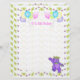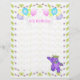 9th birthday party custom scrapbook page featuring a cuddly and cute purple teddy bear princess dressed up in a lovely yellow jewelled crown and pink, blue and green flower accessories and a bunch of balloons with the word PARTY on them with a flower background. It's a fun royal theme for a special princess. This is design 1 of the 2 scrapbook paper designs available for use with matching scrapbook binder available in my store. Original design by Anura Design Studio.