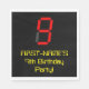 This geeky and nerdy birthday paper napkin design features a large number "9" having a red seven segment digital display inspired look, along with a personalised name and the message "9th Birthday Party!" in nerdy retro style yellow text, on a black coloured background. Fun, personalised paper napkins like this might be used at a party being held to celebrate somebody’s ninth birthday. [~Z0000388]