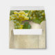 A2 4.25" x 5.5" size note card, thank you notes and stationery invitation envelopes. Two sided envelopes with the interior design to match the wedding invitation, bridal shower, rehearsal dinner or other party invitations of this theme. Your return address can be preprinted on these using the template fields. Envelopes require a longer manufacturing time as they are printed and hand assembled. Please take note of the time and allow enough time to receive them before mailing your invitations. Hand painted rustic, tuscan vineyard inspired ancient stone walls inspired the background with it's rich texture and grunge. Hand painted original artwork by Audrey Jeanne is blended with vintage etched printer's decorative ornament flourishes and her fine art image of Chardonnay grapes hanging on the vine in a vineyard.
