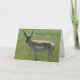 Pronghorn Antelope Big Buck "captioned" Card. This pronghorn was feeding in the lush spring greenery when I took this photo. He is shedding his heavy winter coat for a much lighter summer coat to keep him cooler, summer temperatures on the Alberta Prairies can top 40 degrees Celsius.