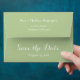 Expectations met; I liked that I had the opportunity to include our address on the back of the envelope. This color matched very well with my save the date. The color was the same as shown above. I had our address labeled on the back of the envelope and the font/printing met my expectations.