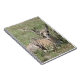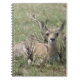 Baby Pronghorn Antelope Notebook. This is a photograph of a baby pronghorn antelope trying to hide in some sage brush but a recent prairie fire has burned away most of the cover. On a cue from mum a baby antelope will drop in its tracks and hide, even if its too sparce to conceal them.