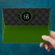A7 Forest Green Damask Flap Monogram Envelopes