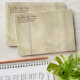 A7 5" x 7" size invitation envelopes. Two sided envelopes with the interior design to match the wedding invitation, bridal shower, rehearsal dinner or other party invitations of this theme. Your return address can be preprinted on these using the template fields. Envelopes require a longer manufacturing time as they are printed and hand assembled. Please take note of the time and allow enough time to receive them before mailing your invitations. Hand painted rustic, tuscan vineyard inspired ancient stone walls inspired the background with it's rich texture and grunge. Hand painted original artwork by Audrey Jeanne is blended with vintage etched printer's decorative ornament flourishes and her fine art image of Chardonnay grapes hanging on the vine in a vineyard.