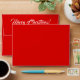 Red A7 Merry Christmas envelopes with handlettered season's greeting on the back flap. Elegant personalised envelopes for Holiday party invites, greeting cards, xmas events, office mailing and more. Pretty brush script handwriting design. Custom handlettering calligraphy typography template. Chic envelopes with printed family surname and return address.