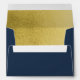 A navy blue 5x7 envelope with a faux Gold foil Lining Inside. This elegant and sparkly metallic gold all purpose navy blue envelope is a classy way to send invitations. You can customise and personalise your name and address on the back flap.