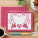 A7 5 x 7 MATCHING wedding invitation envelopes with preprinted return address on the back flap. Inspired by the wonderful Mexican fiesta banners of tissue paper that are hand cut in delightful folk art patterns, this invite set is meant to be mix and match bright colours. Perfect for a backyard, rustic, country western or barn style, spring or summer wedding celebration under the trees. Change the front or back colour using the colour change picker or we can help if you need it, just message us. Hand drawn design elements include laurel leaf wreath elements, swirl scroll flourishes, cute whimsical dove birds, a heart with flowers and leaves and a scalloped edge. On the reverse side are the bride and groom's initials. Original art and graphic design copyright Audrey Jeanne Roberts. NOTE: There are hidden layers inside of the envelope where you can change the layer positions to mix and match to any colour in the fiesta set. COLORS: d65076 bright hot pink begonia fuchsia and white.