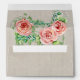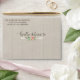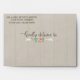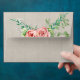 A7 envelope for a 5" x 7" wedding invitation. Preprinted return address included, you will need to write or print your own addresses. The ink colour to match is hex# 595147. Perfect for a rustic, country barn, picnic or outdoor backyard bohemian style wedding celebration. The aged, faded grey barn wood board backdrop is paired with a hand drawn arrow typography style divider and a peony flower. Inside of the envelopes you will find more of the beautiful hand watercolored flowers, foliage and leaf clusters. All artwork copyright Audrey Jeanne Roberts, all rights reserved.