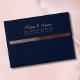 A navy blue 5x7 envelope with a faux rose gold foil Lining Inside. This elegant and sparkly metallic pink rose gold classic blue all purpose envelope is a classy way to send invitations. You can customise and personalise your name and address on the back flap.