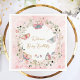 This baby shower paper napkin features delicate hand painted wildflowers intertwined with vintage pastel coloured butterflies on a soft pink with white star watercolor background. You can easily fill in the template with your own details or go into further editing to change the font style, size, colour and placement if you wish. See the matching items in the A Baby Butterfly Is On Her Way Baby Shower Collection in my shop.
