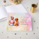 Girl's personalised baby shower guestbook. Sweet baby girl sitting next to an Apricot Poodle in a patch of pretty watercolor flowers. Colours used are pink, coral, purple, blue and yellow.
