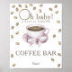 Watercolor coffee beans and cup of coffee and beans pattern. Coffee brewing baby shower. Text with coffee ring and with coffee beans and cup of coffee with a bow.