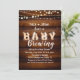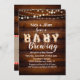 This rustic co-ed baby shower invitation is perfect for a backyard BBQ. It features string lights, wood and gingham. It is perfect for a casual, couples shower.