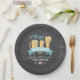 A Baby is Brewing baby shower paper plates. Enjoy food and treats at your craft beer themed baby shower. This design features a black chalkboard background with beer steins and glasses illustration. Instant download option available.