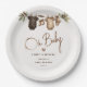 "A Baby is Brewing" paper plates. This design is the perfect blend of warm cream and playful fun, featuring a clever "Oh Baby" heading with a coffee cup stain for the "O" and a heart-shaped coffee bean. Plus, our charming washing line, adorned with gender-neutral baby clothes in rich chocolate brown, creamy beige, and soft brown tones, adds the perfect touch of sweetness to any baby shower. Don't settle for boring plates - add a touch of cuteness and personality to your special day with our adorable "A Baby is Brewing" tableware.