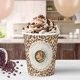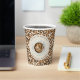 Coffee baby shower theme featuring cup of coffee surrounded by coffee beans.