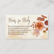 A Baby is brewing fall autumn bridal shower book request enclosure cards, watercolor hot chocolate coffee cinnamon spices cookies maple leaves, brown background for autumn fall themed baby shower books for baby cards.