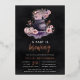 These spooky chic Halloween themed baby shower invitations feature a smoky cauldron adorned with a pumpkin and flowers in a colour palette of charcoal, pink, and purple, with "a baby is brewing" beneath. Personalise with your baby shower details. Rose gold foil accents and lettering complete the design.