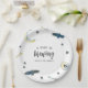These spooky chic Halloween themed baby shower plates feature bones, bats, stars, and a crescent moon., with "a baby is brewing" in the centre. Personalise with your baby shower date.
