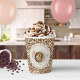 Coffee baby shower theme featuring cup of coffee surrounded by coffee beans and flowers.