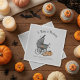 A whimsical hand-drawn Halloween "A Baby is Brewing" gender neutral baby shower design in black ink. Features an antique baby carriage, black crow and pumpkins on a light grey background. Name & Event and Date are editable.