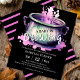 Celebrate the upcoming arrival of your little one with a stylish Halloween baby shower invitation! This enchanting design features a charming cauldron bubbling with vibrant purple mist against a dramatic black background, perfectly capturing the spirit of the season. Adorned with the playful phrase "A Baby is Brewing," this invitation adds a delightful touch to your festivities. The reverse side showcases an eye-catching black and purple striped pattern, enhancing its overall allure. This affordable invitation is not only inviting but also sets the perfect tone for a magical celebration!