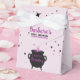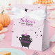 Add a touch of Halloween magic to your baby shower with these enchanting favour boxes! Featuring the silhouette of a beautiful pregnant witch and a magical cauldron, these boxes are perfect for a festive and unique celebration. The cauldron bubbles, with a colourful potion, add a whimsical touch to the black design. Surrounded by stars, these boxes blend the joy of a baby shower with the spooky charm of Halloween. Ideal for those who love a unique and festive touch!