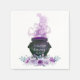 Purple smoke coming from this Halloween cauldron. Customise with date of baby shower.