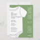 A fun couple shower theme - A Baby is Brewing! This baby shower invitation includes a cute baby t-shirt with green background and modern calligraphy font for the parents-to-be names. Add the Mum-to-be information with party information plus where the new mother is registered for gifts. This oversized baby tee holds all of the party information. A simple, polka dot pattern is on the back.