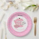 Super cute baby shower paper plates with a cute kettle and tea cup surrounded by pretty love hearts in  pink and white. A favourite with ladies holding baby shower tea parties.