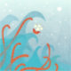 Intrepid sailors on a ship facing huge ocean waves and a tentacled sea monster. Not a great day so far.