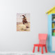 This image is of a beautiful vintage watercolor by famed cowboy artist Charles Marion Russell. Now in the public domain, it depicts an American cowboy riding a bucking bronco, his whip in the air, and his hat taking flight. The horse and rider images are placed on a dry desert western landscape. Truly a magnificent piece of American history.