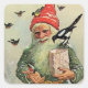 Jenny Nystrom created the image of the tomten or mischievous spirits and gnomes who protected the Swedish farmstead and buildings. They also represented Father Christmas who delivered children’s presents on Christmas eve. This image depicts a tomton with a bag of birdseed feeding a flock of wild birds.