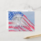 With the American Flag's stars and stripes slightly billowing in the background the American Bald Eagle stares proudly on. Photography and design by Robin D. Cox.
