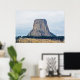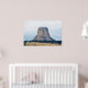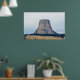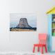 A photograph of a laccolithic butte known as, Devils Tower National Monument, towering over the landscape of rural Wyoming, one Summer day.