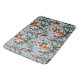 Floral bath mat. Transform your space with this stunning faux mosaic pattern, featuring vibrant coral-coloured flowers intertwined with lush green foliage. The intricate design mimics the look of stained glass and ceramic tiles, creating an elegant and timeless aesthetic. Perfect for adding a touch of artistry to any room.