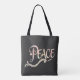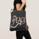 A beautiful, flowing script of the word "Peace" fe Tote Bag