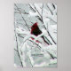 A Beautiful Red Cardinal In The Bushes Covered Wit Poster