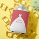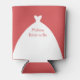 A can cooler perfect for your bridal shower? Displaying a pink background with a white wedding gown in the middle of the design. On the dress, the bride to be name is customised in pretty pink text. Purchase yours today!