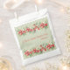A sweet "thank you" favour bag with a summer berries theme. This 'Berry Sweet thany you' bag features a soft green background and strawberries and blooming strawberry plants. It includes elegant serif and handwritten fonts for a charming touch. The design is fully customisable with event details, making it perfect for a spring or summer celebration.