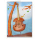 Watercolor illustration. On a splendid day with a blue sky and white clouds, a tiny bird on a cello seems to talk with a dainty leaf. This is the perfect present for not only kids, but also adults. You can customize it with your own text.
