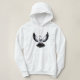 a bird with wings spread wide, bold black and white feathers, heart-shaped emblem on chest, digital art, minimalist, geometric, ornate, detailed