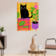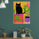 A Black Cat With Houseplants Plaid Chair Poster