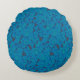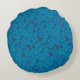 a blue and black background with a pattern round cushion