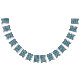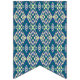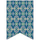 The design you provided features a repetitive geometric pattern. It consists of diamond and teardrop shapes arranged in a tessellated manner. The primary colours used are blue, green, and white. Each diamond shape is outlined in blue, enclosing a smaller green diamond, which in turn encloses a white teardrop shape. The overall design creates a sense of depth and complexity. It could serve as inspiration for patterns or decorative elements.